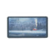 A serene winter lakeside cabin scene, beautifully detailed with snow-covered trees and a cozy cabin nestled beside a tranquil frozen lake, make for a stunning holiday shipping label.