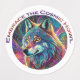 'Abraza el aullido cósmico' lobo psicodélico. Colorida y llamativa, esta etiqueta tiene un lobo con colores cósmicos que gira alrededor. Un recordatorio trippy y espiritual para permanecer fiel a los valores de la naturaleza. Contiene contenido generativo.