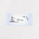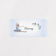 Hermosa bailarina de tutu azul y zapatillas posadas en posición de estar.