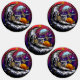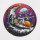 Arte vectorial original de un astronauta que tiene queso de luna y pasa una tajada a un alien. Creado en vector.