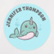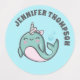 Etiquetas con un lindo ilustracion de narwhal. Estos diseños tienen unos narices divertidos sobre un fondo azul punteado que se pueden personalizar.