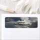 Etiquetas de direcciones que incluyen una foto de un cielo nublado. Personalizar tu nombre y letra al desproteger.