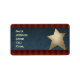 Etiquetas de direcciones primitivas de países con corazón remendado en un pedistal.
