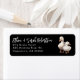 Los patos devuelven las etiquetas de dirección. Dos patos blancos decoran las etiquetas negras con texto blanco. La primera línea es la secuencia de comandos para nombres o nombres de familia. El espacio de direcciones contendrá tres líneas, según sea necesario.