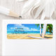 Etiqueta de dirección de retorno mostrada con un diseño de impresión de escena de playa. Personalizar este elemento y cambia el texto al tuyo. Imagen de stock