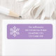 Un copo de nieve blanco y dirección en casa sobre un fondo morado claro.