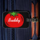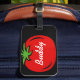 Etiquetas de encargo del equipaje del viaje del tomate rojo divertido. Añada su propio nombre de los niños o cita divertida. Icono sano del vector de la comida con tipografía de la escritura. Cree su propia etiqueta accesoria para los bolsos y las maletas. Diseño de la diversión para el vegano/el vegetariano, los granjeros del recién hecho, los amantes del tomate, los recién casados, el cocinero del cocinero, el etc.