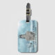 Etiqueta del equipaje de sirvienta con la imagen de una alegre sirena en el mar y una cita de E, E, Cummings.