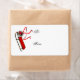 Gorgoous Red Slead con cintas decora esta etiqueta de nombre de Navidades.