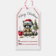 Un encantador mapache en un Santa hat disfruta de una galleta de una taza de cacao caliente, rodeado de regalos de Navidades y un pequeño árbol, capturando la esencia de la alegría y las festividades de las vacaciones.