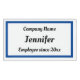 Estas etiquetas de nombre muestran un borde rectangular azul para mostrar el nombre del empleado, el nombre de la empresa y el año en que el empleado comenzó con la empresa. El fondo es blanco y el texto es negro. El nombre del empleado está escrito en el centro y es el texto más grande, para facilitar la lectura del nombre de otra persona. Personalizar fácilmente el texto de los formularios de plantilla. Gracias por comprar en CherylsArt en Zazzle.