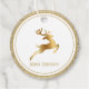 La etiqueta de regalo se crea sobre un fondo blanco con falsos acentos purpurinas, límites mate de color dorado y texto de Feliz Navidad saludando a tu receptor de regalos con una imagen centrada de color dorado de un reno deslumbrante. Color blanco/dorado. Personalizar este artículo o compra tal cual.