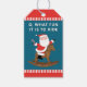 Navidades de vacaciones etiquetas de regalo para los amantes de los caballos, entrenadores o ciclistas de rodeo con Santa montando un caballo mecedor.