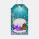 Etiquetas de regalo de la sirena afroamericana con adorables sirenas afroamericanas usando una bonito y una cuerda de perlas en un azul violeta y verde azulado bajo el fondo del mar. Puede realizar el personalizar de su evento simplemente añadiendo el texto de su elección en el estilo de letra que prefiera. Se trata de un diseño impreso sin purpurina real, perlas, etc.