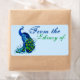 Dibujo original a lápiz de color de Sandra Gale de un pavo real coloridamente pluvial. Gran diseño para los amantes de las aves y para aquellos que aprecian especialmente la belleza única del pavo real.