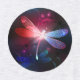 Flor, vuelo, libélula roja, con alas transparentes y detalladas sobre fondo oscuro, nocturno y luminoso con plantas tropicales y luciérnagas. Lluvia roja.