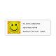 El original botón clásico amarillo y negro de la cara hace una etiqueta de dirección alegre y brillante. Las ráfagas de sol detrás de la cara se suman a la alegría. Cambie fácilmente el estilo de letra y/o color del texto a personalizar. ¡Envíen algo de felicidad con estas soleadas, inspiradoras, motivadoras etiquetas! Hay tres tamaños de etiquetas disponibles.