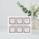 Estas 6 Etiquetas de Favor son una adición perfecta para cualquier boda o fiesta de compromiso. Simplemente recorta y descarta las porciones blancas, haz un agujero en la esquina superior izquierda con un perforador y adjúntalas con cinta o hilo a tus favores. Estas se imprimen en un tamaño de 1,5" x 1,5" en papel de cubierta ultra pesado de 120 lb. brillante (papel de tarjeta). Seis por tarjeta. Tenemos toda una línea dedicada a este diseño aquí en nuestra tienda zazzle bajo la pestaña del menú *Comprar por COLECCIÓN DE BODAS para incluir invitaciones (5x7), Etiquetas de devolución, Etiquetas de correo, Sellos de sobre, Sellos postales, Picks de pastelitos, Envolturas de botella de agua, Envolturas de barras grandes de Hershey's de 1,55 oz., Pegatinas miniatura de Hershey's, Envolturas de bolsas de palomitas de microondas, Tarjetas de lugar escribibles, T