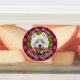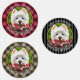 El territorio blanco de la región montañosa occidental y las flores rosadas. Perro occidental asomando un arbusto florido. Sophie. Derechos reservados © 2025 Angi Laframboise. Regalos de raza de perros de arte fino para los amantes del perro.