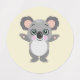 Etiquetas com ilustração de coalas engraçados em fundo amarelo.