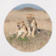 Dos jóvenes leones sentados en un montículo de termitas. Esta imagen fue tomada en un safari en Kenia, la reserva de juegos Masai Mara. © Angelika Stern