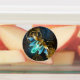 luciérnagas de vapor con alas transparentes azules y bombilla verde sobre fondo gastado, marrón y texturado. Estilo Steampunk.