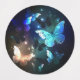 Fabuloso, brillante, azul y amarillo, mariposa nocturna sobre fondo oscuro.