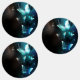 Mariposas brillantes nocturnas de menta sobre fondo abstracto negro.