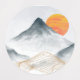 Ilustracion de pintura de acuarela de Blue Mountain. Resumen de los paisajes estéticos contemporáneos, con montañas, colinas, sol y arte lineal