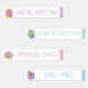 Etiquetas de nombres personalizadas - perfecto de vuelta a los suministros escolares para niños y estudiantes de cualquier edad. Diseño de sirena y paleta de colores pastel de color rosa verde violeta y azul. Puede utilizar hasta 4 nombres diferentes en tipografía de estilo manuscrito. Si desea cambiar el tipo de letra, el color o el tamaño, haga clic en el personalizar y edite con la herramienta de diseño.