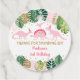 Estas adorables etiquetas para los bebés incluyen hojas de acuarela tropical con adornos de hojas de purpurina dorado y dinosaurios rosas.