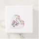 Etiquetas favoritas con un bonito ilustracion de color elefante rosa. Ella tiene unas orejas puntiagudas rosadas y blancas de polka y un arco de cinta rosada en la parte superior de su cabeza. La parte superior está decorada con un bonito ramo de rosas.