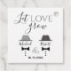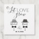 Simple, moderno, elegante, negro y blanco etiqueta de favor de boda gay con cita romántica: Let Love Grow.