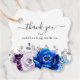 Elegante Moqueta azul real púrpura lila espliego floral boda de agradecimiento etiqueta con elegante ramo de azul polvoriento, Marina, púrpura, flores de rosa de color lila y hojas de eucalipto verde salado. Comuníquese conmigo para obtener ayuda sobre la personalización o si necesita cualquier otro producto con este diseño.