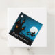 una bruja volando sobre su palo de escoba pasando la luna llena con una casa oscura en el fondo y un gato en la valla 100% Personalización. Haga clic en el botón PERSONALIZAR para agregar, mover, eliminar, cambiar el tamaño o cambiar cualquiera de los tipos de letra o gráficos.