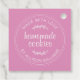 Etiqueta de galletas caseras rusticas y sencillas con el texto hecho con amor, pastel de manzana y tu nombre en caligrafía de escritura de moda manuscrita fuera de negro y tipografía moderna en un fondo rosa fucsia con un toque elegante de follaje. Simplemente agregue su nombre y el nombre del producto a la etiqueta. Diseñado exclusivamente para usted por Happy Dolphin Studio. Si necesita ayuda o productos coincidentes, por favor contáctenos en happydolphinstudio@outlook.com.
