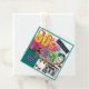 Conjunto de 12 etiquetas de favor cuadradas con una imagen de un collage de todas las cosas de los 80. La parte posterior es verde con texto de personalizable. Ver la colección completa de etiquetas de favores y regalos Tubular 80s en la sección FAVORS de FIESTA.