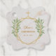 Este elegante diseño botánico tiene un marco de oro geométrico irregular con ramas de sauce verdes con hojas a la izquierda y a la derecha sobre dos hexágonos de oro que se superponen, con una cruz de oro en su parte superior. El fondo es de mármol blanco. El nombre del niño está escrito en un guión caligráfico elegante; el resto está escrito en mayúsculas. Todo el texto tiene un color amarillo dorado, como el marco dorado. Las ramas de sauce son del patrón vintage de papel pintado "Willow Bough" diseñado por William Morris (1834-1896 ), ahora de dominio público.