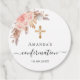 Para una confirmación elegante y moderna. Un fondo blanco. Decorada con oro rosa, flores rosadas y pasto pampas. Personalice y agregue un nombre y una fecha. Atrás: añade tu nota de agradecimiento.