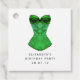 Mardi gras verde irlandés enmascaran la etiqueta de regalo con un patrón de corsé y arlequín inverso.