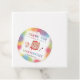 Pintura ligera y colorida o etiqueta de cumpleaños de arte con pinturas en color arcoiris con falsos purpurinas de oro alrededor con un texto en color arcoiris que dice "Gracias por hacer de mi fiesta una obra maestra". También hay un bonito gato con gorra y bufanda de boina roja, paleta de pintura y pincel de pintura. Personalizar este producto agregando el nombre de su hijo en la parte inferior.