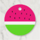 Etiquetas redondas de sandía mate con la parte posterior de un color rosa sólido.