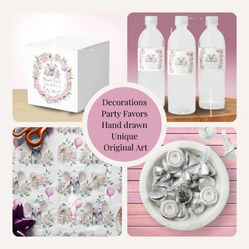 Este encantador ilustracion de dibujos a mano cuenta con un elefante bebé sentado entre peonías delicadas, globos y hojas de eucalipto, creando una atmósfera serena y caprichosa para su etiqueta de favores de la ducha de bebé. Este servicio incluye una colección completa de duchas para bebés.
