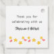 Etiquetas personalizadas de ducha de bebé con diseño de elefantes adorables. Un lado de la etiqueta tiene un adorable elefante bebé en la luna, durmiendo rápidamente bajo su manta favorita y las estrellas. La parte posterior de la etiqueta tiene un mensaje de agradecimiento y su(s) nombre(s), que puede editar o borrar como desee. Por favor, visite nuestra tienda para coordinar invitaciones a duchas de elefantes, regalos de guardería y suministros de fiesta.