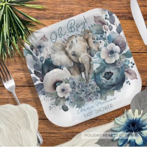 Elephant Oh Boy Blue Floral Baby Shower | SprinkleDiseñado por Tammy Yargates