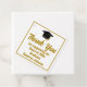 Esta elegante etiqueta de favores de la fiesta de graduación dorada incluye tu nombre de graduado de secundaria o universitario y escuela en moda, tipografía audaz alrededor de una moderna tapa de grad negro. Grandes etiquetas de favor partidario para la clase superior.