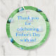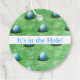 Conjunto de 12 etiquetas de favor redondas con una imagen de un putting green y montones de bolas de golf dirigiéndose a los agujeros. La cinta blanca al otro lado del frente tiene el sentimiento de personalizable "¡Está en el agujero!" La parte posterior tiene la misma imagen que la parte delantera y un círculo transparente blanco con texto en personalizable. Vea toda la colección de etiquetas de regalo y bolso de regalo del Día del Padre en la sección FAVORS de la FIESTA.