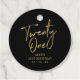 Esta etiqueta de agradecimiento de personalizado simple añadirá detalles elegantes a su día especial. Este diseño presenta letras modernas de guión dorado "Twenty One" con texto personalizado. En mi tienda BaraBomDesign hay disponibles invitaciones y suministros para fiestas que coincidan con el 21 cumpleaños.