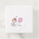 Cute tema del cachorro etiqueta de chica de cumpleaños con ilustracion de un perro usando un gorra y un globo de fiesta rosa. El texto dice "gracias por venir a mi PAWTY".