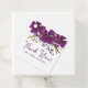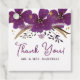 Esta encantadora etiqueta de bienvenida de bodas incluye hermosas flores moradas violetas de color morado acentuadas con falsos puntos de salpicador purpurina dorado.